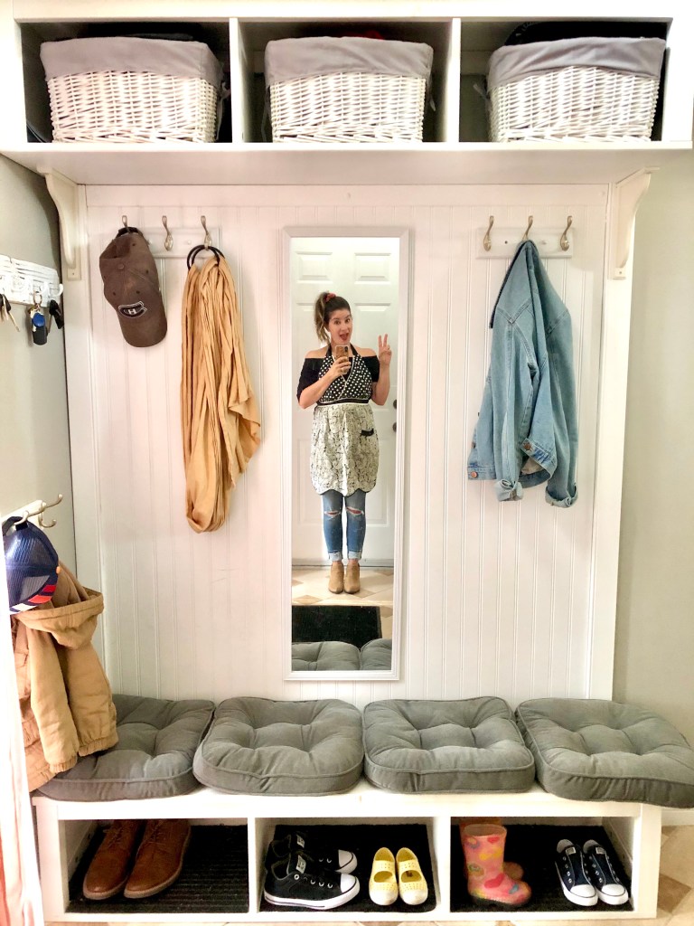When we moved into our home, our entrance was nothing but blank walls, and the nearest entrance closet was only accessible by climbing a flight of stairs. Hello – not practical! Especially with kids!